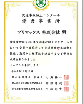 2025/7/1~2025/9/30 交通事故防止コンクールが開催され、全社員が参加しました。